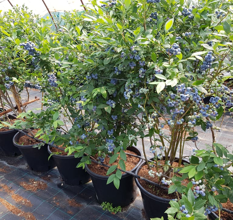 Kínálatunkban 6–7 éves áfonyabokrok találhatók, 35–45 literes edényekben. A növények magassága 100–200 cm, méretüktől függően évente több kiló ízletes termést hoznak. A Növények akár 25 évig teremnek, -30 fokig nem fagynak meg.